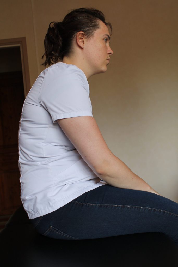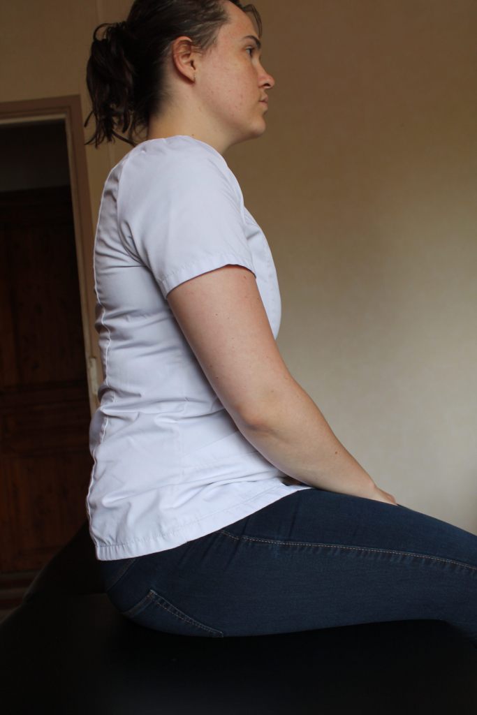 Comme nous l’avons précisé précédemment, cet exercice se réalise en position assise, le dos droit, les abdominaux maintenus (gainés). Vous êtes assis sur vos ischions, repère osseux que nous pouvons sentir a travers les muscles fessiers. Il est important de ne pas se tenir avachis, ni trop raide comme peuvent le montrer les photos ci-dessous. Il faut prendre la position intermédiaire.